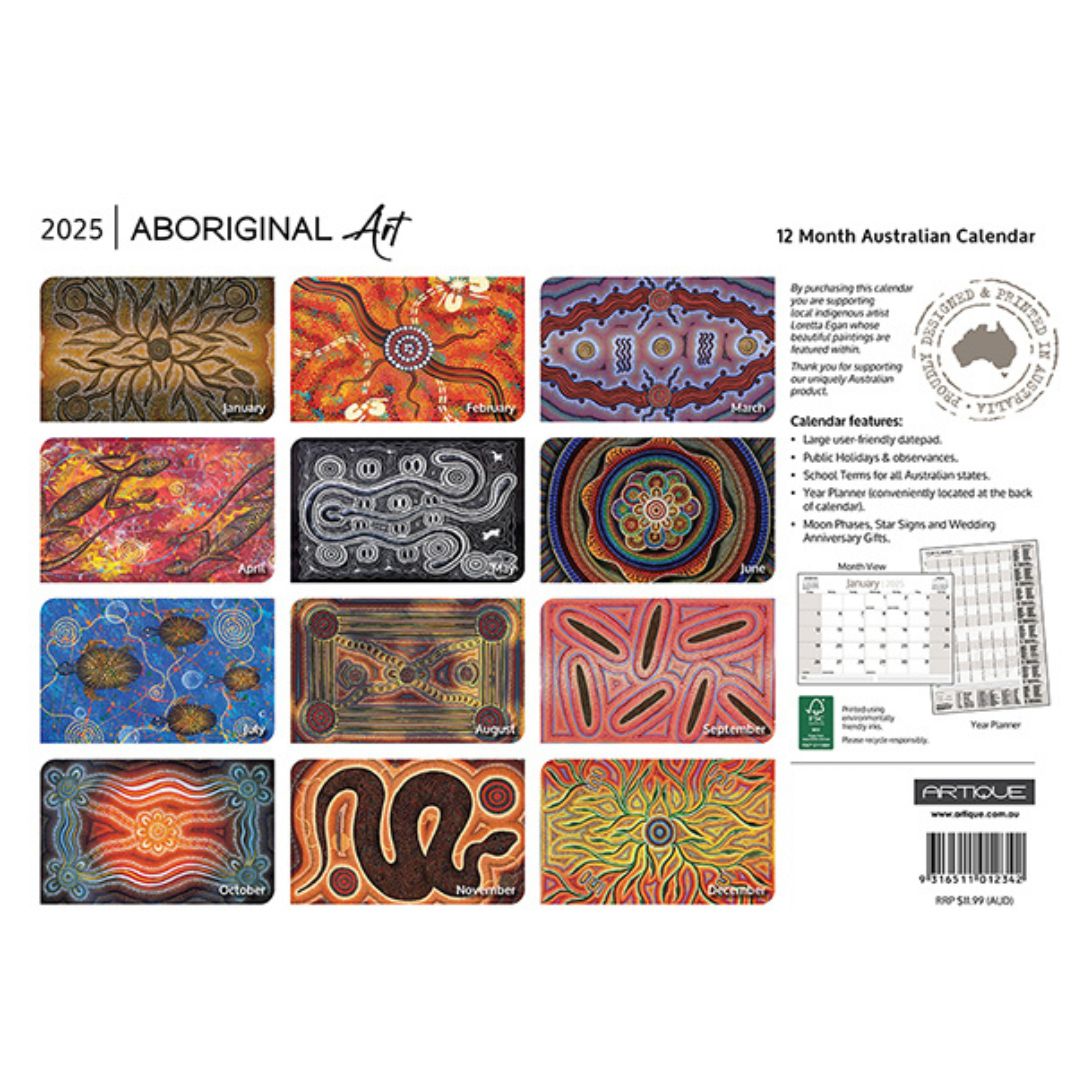 2025 Aboriginal ArtBy Artique Horizontal Wall Calendar