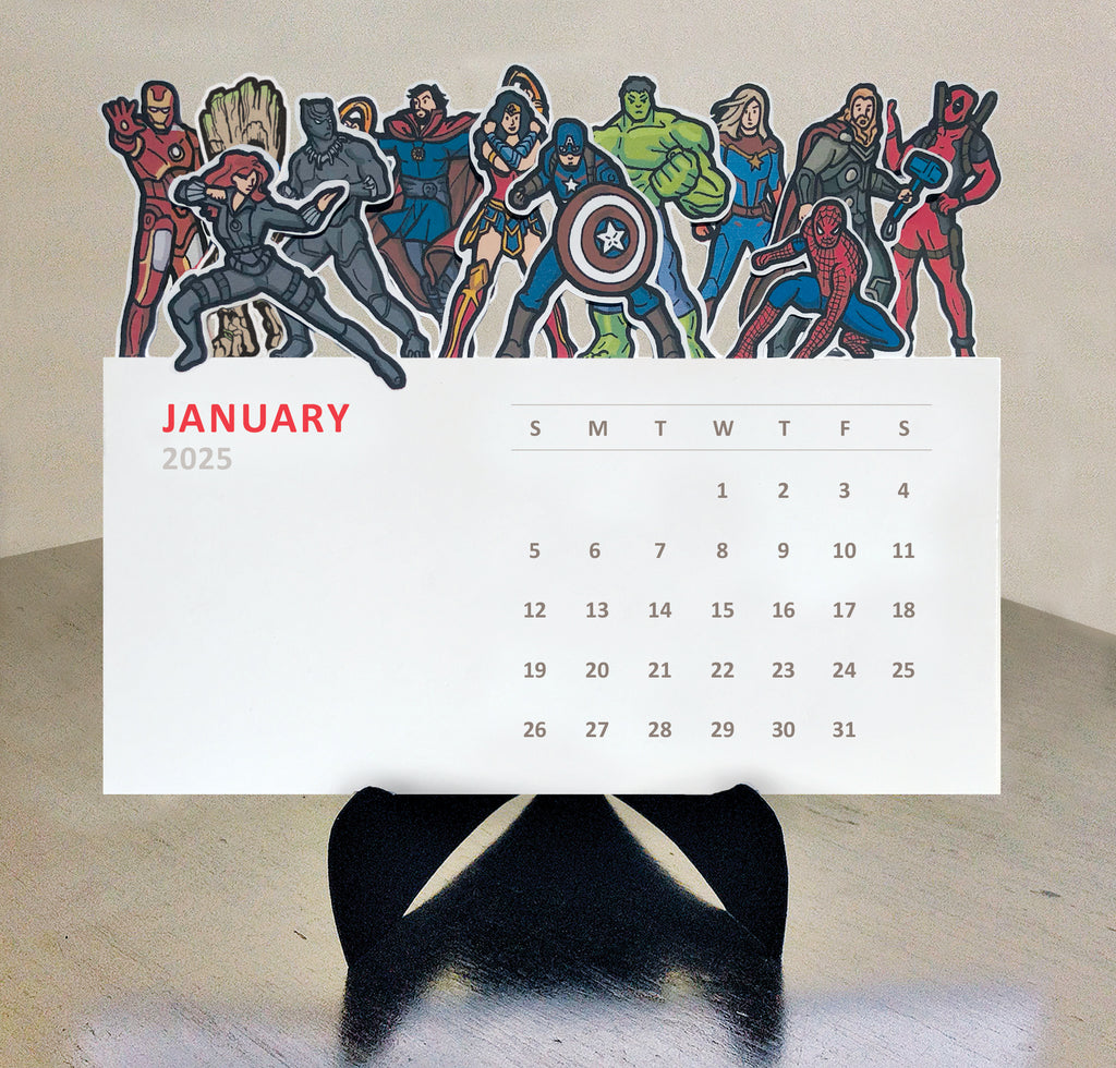 Superhero Die Cut 2025 Desk Calendar – Design Corner Online